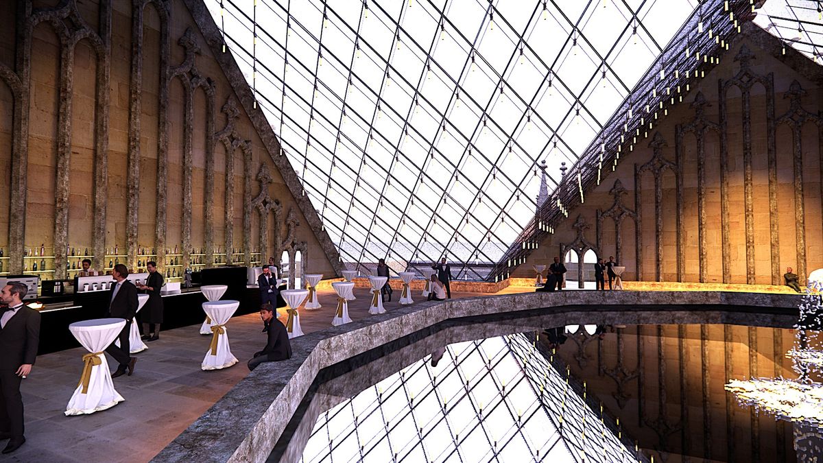 Doplňkové funkce (muzeum, galerie, restaurace s prosklenou střechou) vytvářejí kulturně-společenský mix, který navazuje na tradici radnice jako živého organismu. Transparentní zastřešení restaurace poskytuje kontrast k masivní hmotě a dodává stavbě prvek vizuální lehkosti.