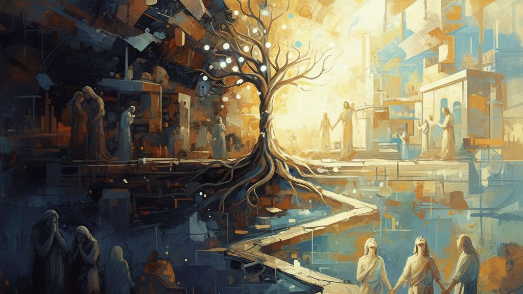 Ústředním tématem tohoto zamyšlení je stav, který bychom mohli zjednodušeně nazvat „zmatkem“ ve víře – určitá rozpolcenost věřícího člověka. Je to zkušenost, se kterou se může ztotožnit mnoho lidí. Na jedné straně stojí důvěra v Boha, spoléhání se na jeho odpuštění, radost, vědomí Boží vůle a pocit jeho přítomnosti, který dává naději do budoucnosti. Na straně druhé však mohou na člověka doléhat hříchy minulosti, nemoci, nezdary a strach z budoucnosti, doprovázené otázkou: „Bože, kde jsi, když je na světě tolik zla?“ Nejde přitom o střídání těchto stavů, ale o jejich souběžnou existenci. Právě tato rozpolcenost, plná vnitřního napětí, se zrcadlí i v biblickém textu, který je postaven na kontrastech: víra versus pravidla, minulost versus budoucnost, bohoslužba versus chrám, smutek versus radost.