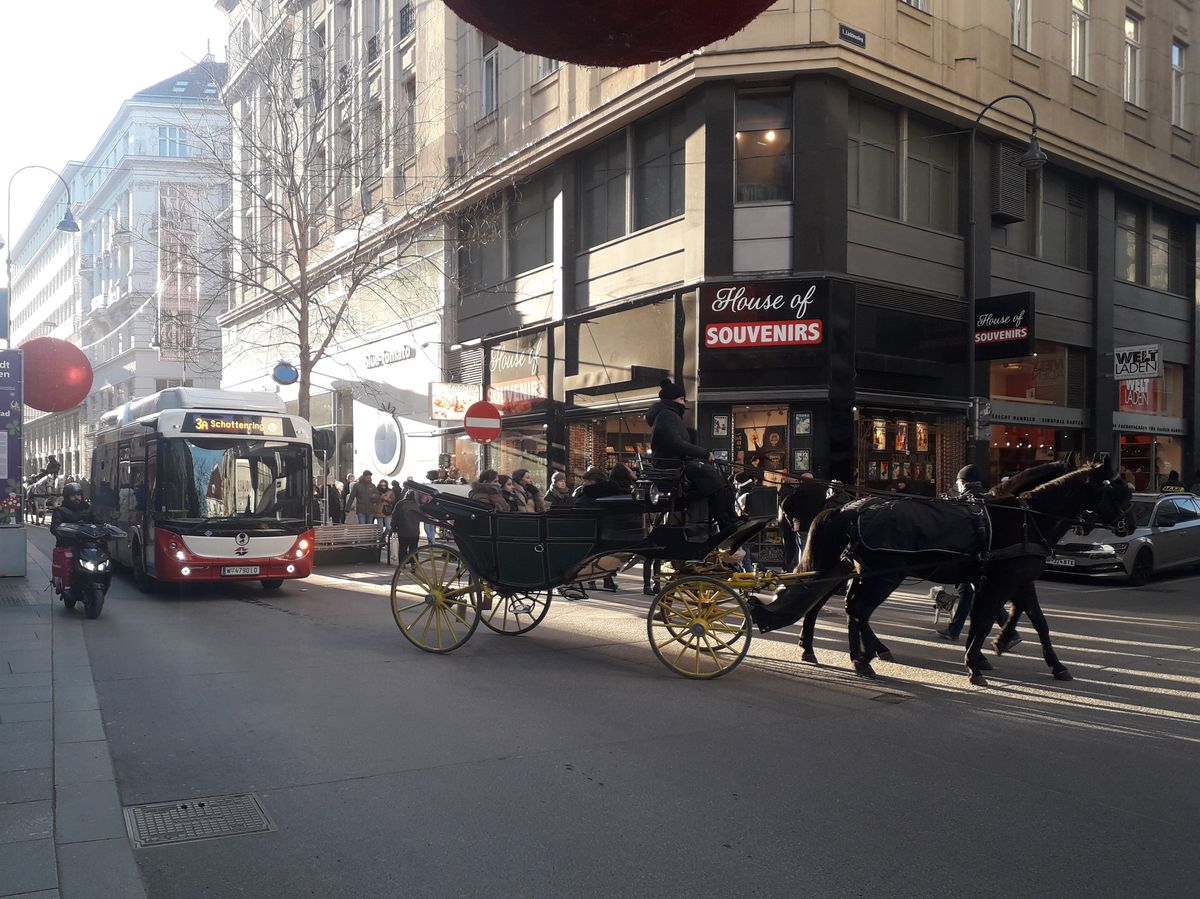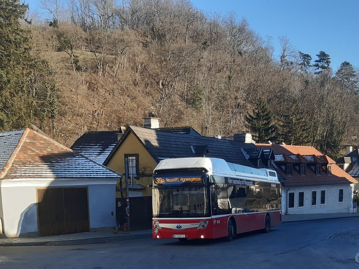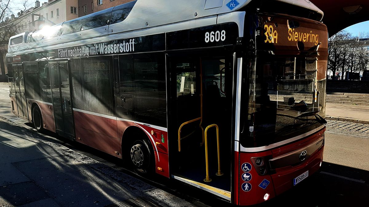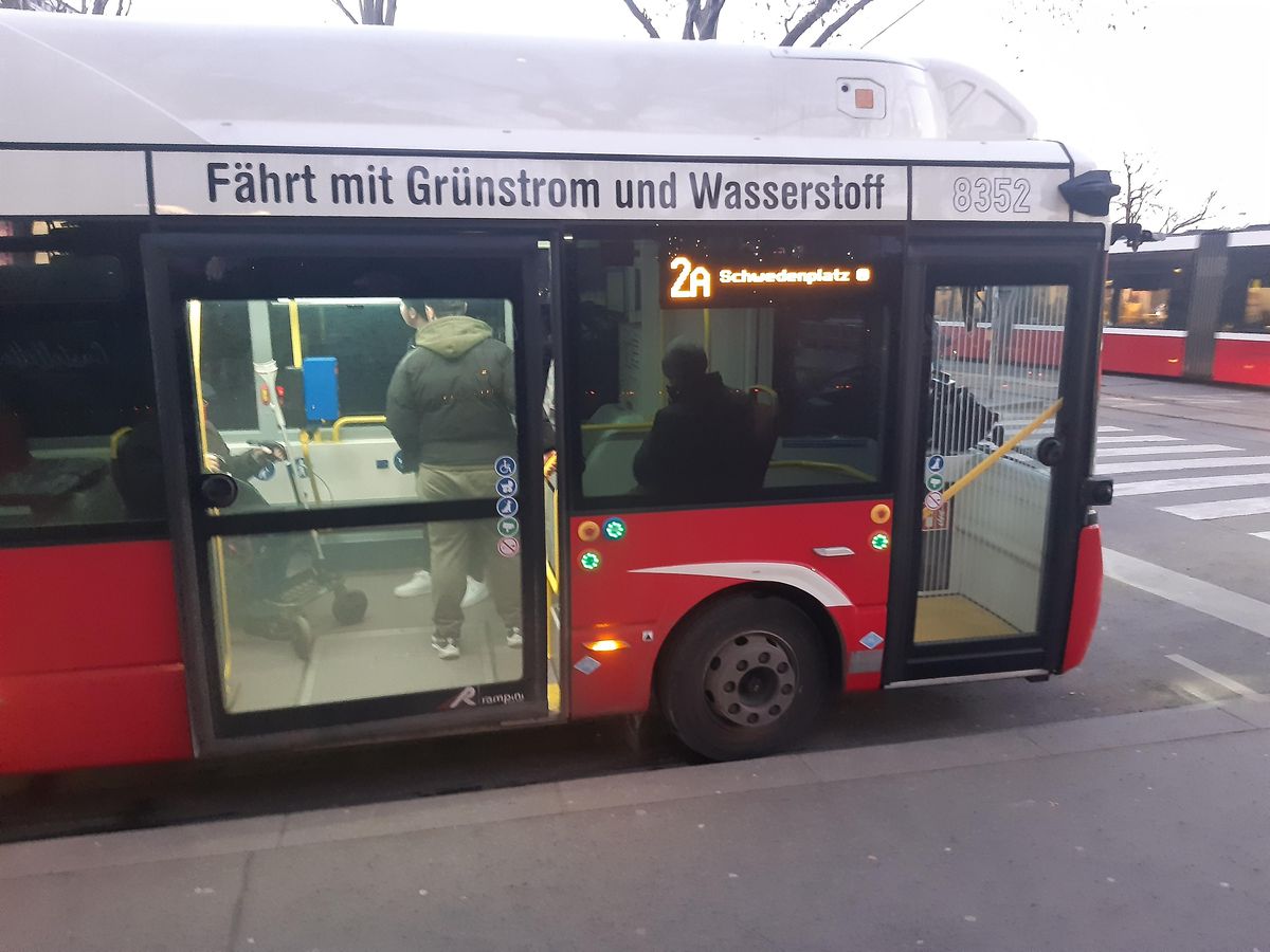 Od prosince 2025 je zdejší linka 39A plně elektrifikovaná palivočlánkovými elektrickými autobusy. Navíc elektrické midibusy nabíjené pantografem z troleje, brázdící dvanáct let historické centrum Vídně, byly loni nahrazeny podobnými, ovšem poháněnými elektřinou z vodíkových palivových článků a baterií. Obojí budilo naši zvědavost a stálo za prozkoumání v jeden prosluněný všední den mezi Vánoci a Novým rokem.