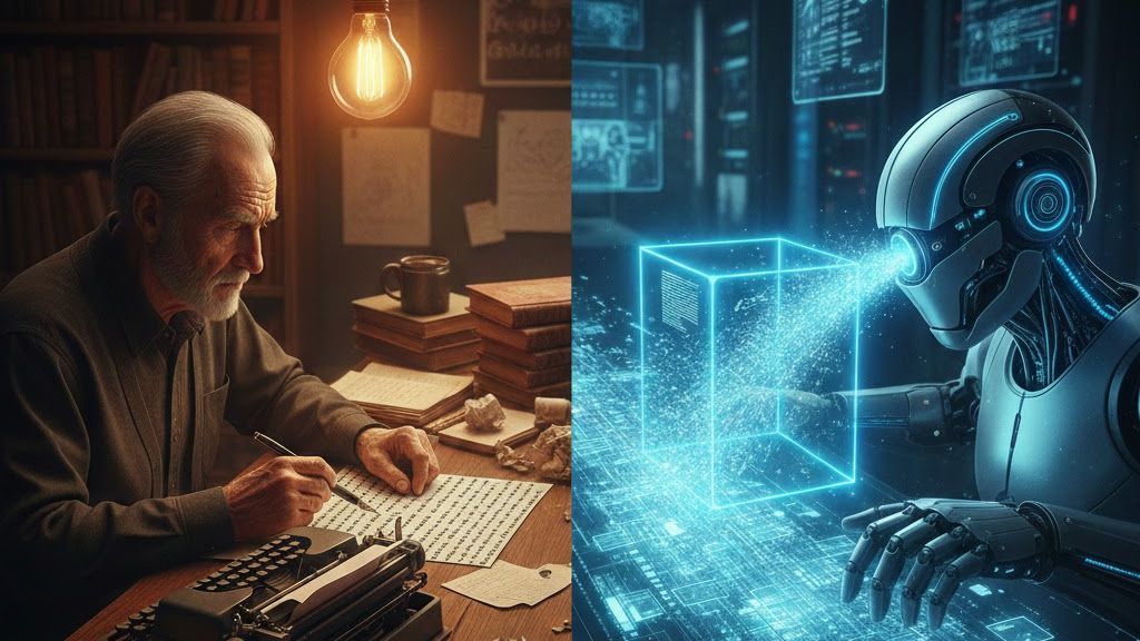 A proč nás tedy umělá inteligence zatím nenahradila? Protože jí chybí záměr a zodpovědnost. Nedělá chyby, dělá halucinace. Člověk dělá chyby, které se mění ve styl. Hemingway nepsal krátké věty proto, že mu to spočítal algoritmus, ale proto, že byl úsečný a drsný chlap. Sarkasmus AI je imitace bez pochopení. Je to vtip vyprávěný někým, kdo nechápe, proč je vtipný. Timing je mimo. Pointa přichází pozdě nebo vůbec.