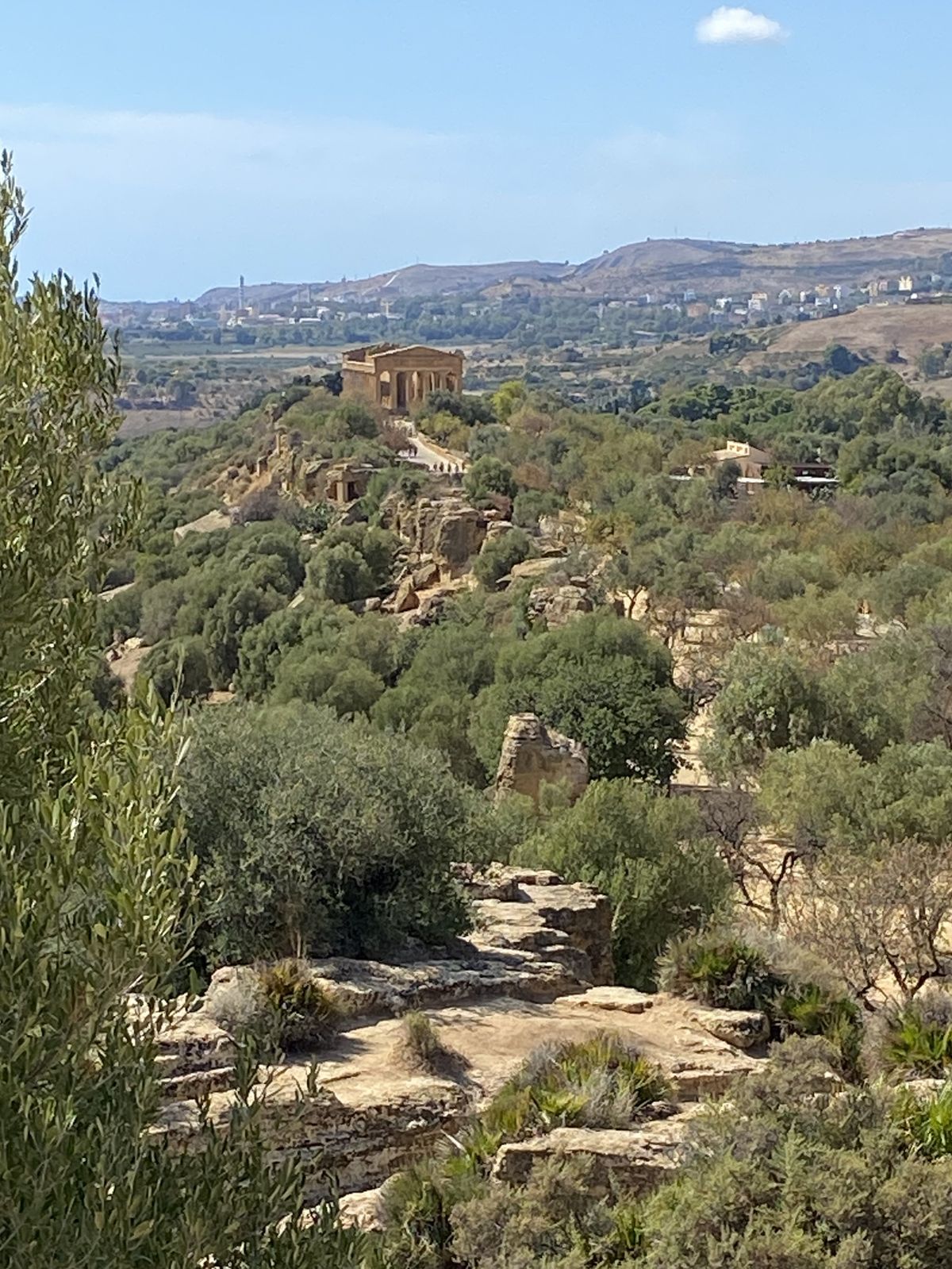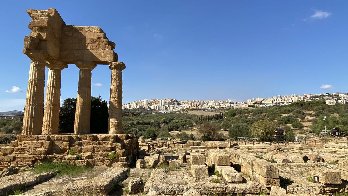 Dnešní Agrigento (Akragas) při pohledu z Údolí chrámů.