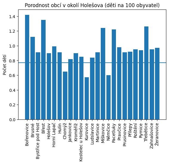 📊 Srovnávací graf porodnosti obcí v okolí Holešova ukazuje, že: