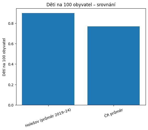 Česká republika se v posledních letech potýká s bezprecedentním poklesem porodnosti. Podle dat Českého statistického úřadu se v období let 2019–2024 v Česku rodilo v průměru 0,77 dítěte na 100 obyvatel, což je historicky velmi nízká hodnota. Přepočet těchto dat provedla redakce Seznam Zpráv.
