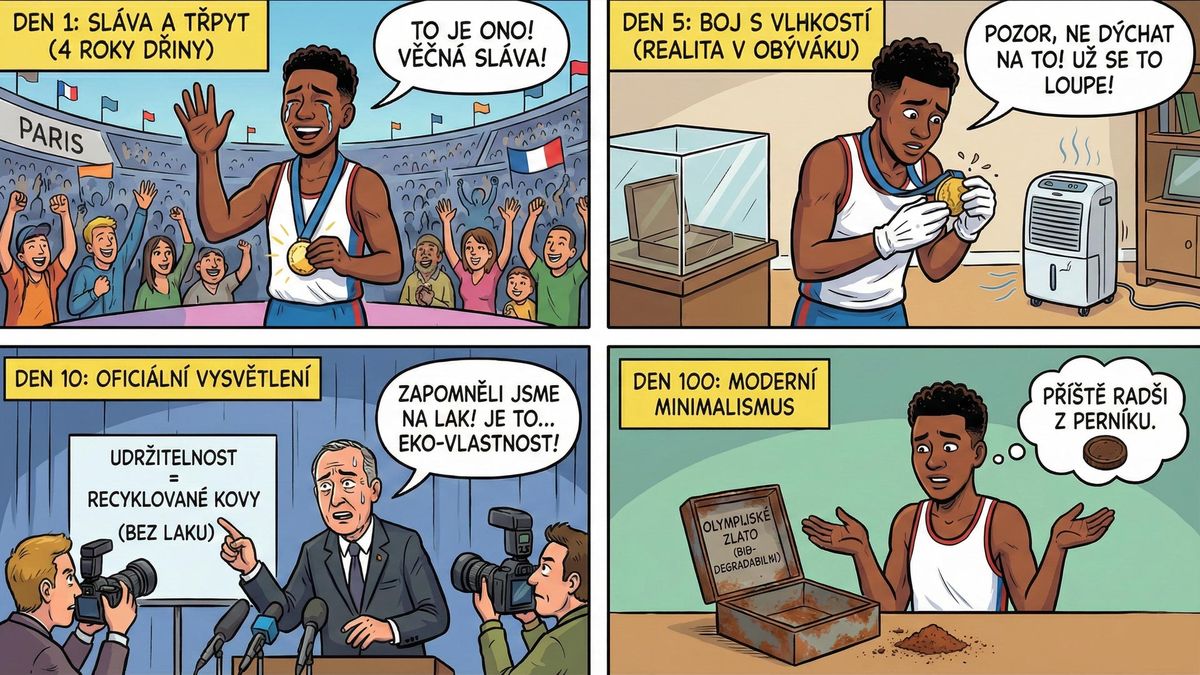 Pokud jste si mysleli, že největší výzvou pro olympionika je trénovat čtyři roky v kuse, krotit nervy před miliardami diváků a pak vteřinu po vteřině vyždímat ze svého těla maximum, byli jste na omylu. Skutečný boj začíná až doma v obýváku, kde musíte svou čerstvě vyhranou medaili bránit před agresivním kyslíkem, vlhkostí a pohledy, které by ji mohly nechtěně oloupat.