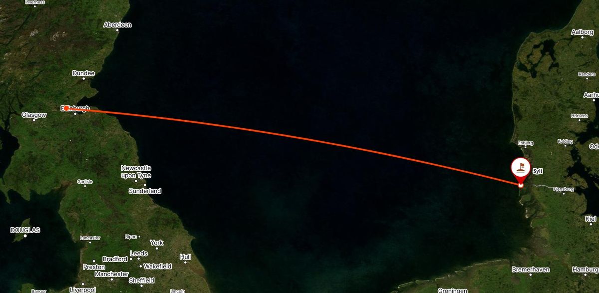 Trasa vzdušnou čarou mezi Syltem a Rosythem