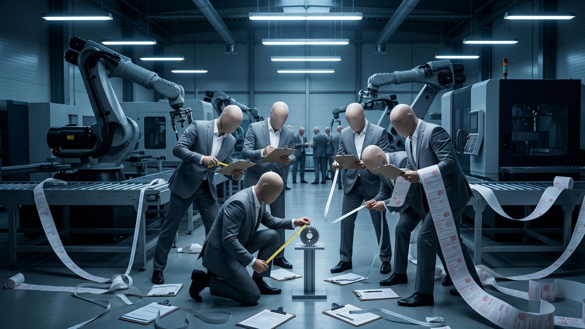 Každý kontrolor v České republice je vnitřním systémem tlačen k tomu, aby vždycky něco našel. A pokud nenajde reálné ohrožení (protože stroje jsou bezpečné a lidé mají ochranné pomůcky), musí najít alespoň chybu v papírech. Chybějící podpis na prezenční listině o školení BOZP staré tři roky. Špatně naformátovanou směrnici. Starý typ piktogramu na dveřích.