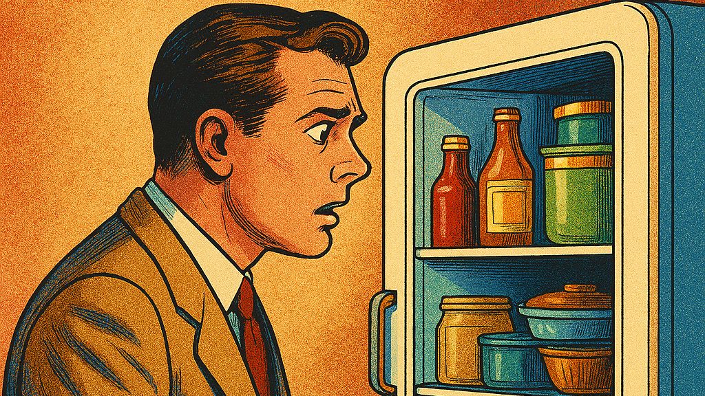Je to fascinující. Muž otevírá dveře ledničky. Nastává ticho, následně přerušované zvukovým signálem. Studený vzduch uniká ven a náklady na energie stoupají. Teprve po několika minutách mužovy oči začnou běhat po policích, jako by se snažily rozluštit egyptské hieroglyfy. Potom přijde věta, kterou už slyšely miliony žen po celém světě: „Není tu nic k jídlu.“ Žena v tu chvíli odkládá v obývacím pokoji knihu, kterou by nejradši svého milovaného praštila po hlavě. Přichází do kuchyně, sahá do pípající lednice, vytahuje cosi ven a začíná kouzlit. S čárami a márami skončí po několika minutách a na stole leží tříchodová večeře, včetně salátu a dezertu.