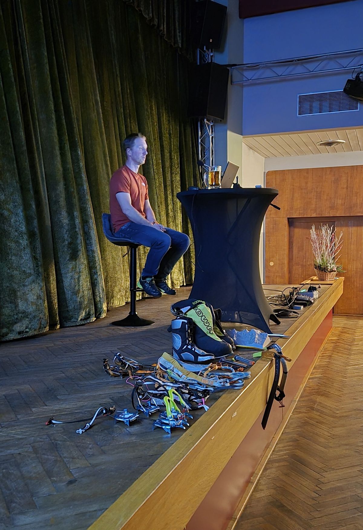 Také jsem seznámil s přednášejícím Františka Čápa, kdysi reprezentanta ČR v horolezectví a zakladatele populárních Letních táborů pro děti v Praskolesích. Pak už jsem se nedostal ke slovu😊 Měli si co říci a co vyprávět. František má za sebou i náročné zimní prvovýstupy ve Francouzských Alpách. Z jeho reprezentačních kolegů a kamarádu většina už přišla o život. Bohužel někteří z nich i mimo skály, kdy byli zavražděni, ve spánku ve svých stanech v zemích, kde nebylo moc bezpečno…