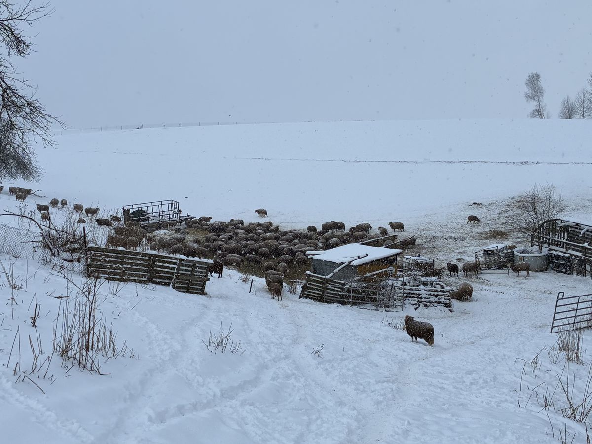 Ovce „bez čísel“ jsme si nemohli fotit zblízka. V době našeho rozhovoru se venku nacházelo téměř celé ovčí stádo.