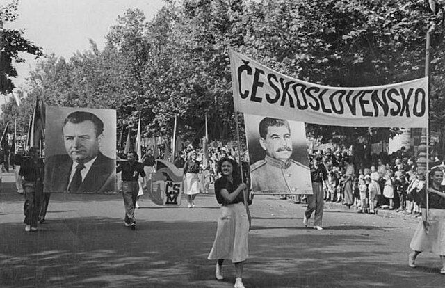 „V této škole učil se věrný syn dělnické třídy, žák Lenina a Stalina, president republiky Klement Gottwald.“