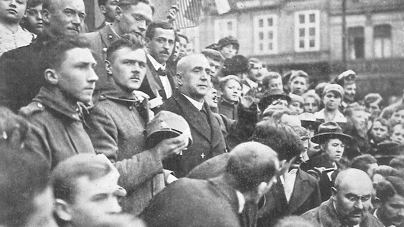 Radoval se ze samostatnosti, která byla jen v jeho představách, a táhnul ulicí Na Příkopě do Celetné a na Staroměstské náměstí. U sochy Jana Husa se dav zdržel a na zpáteční cestě k soše svatého Václava se do čela průvodu připletl farář Zahradník.