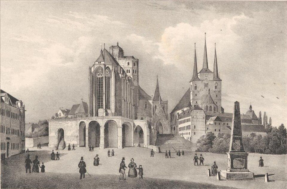 Rytina erfurtské katedrály z roku 1839 od Heinricha Wilhelma Teichgräbera