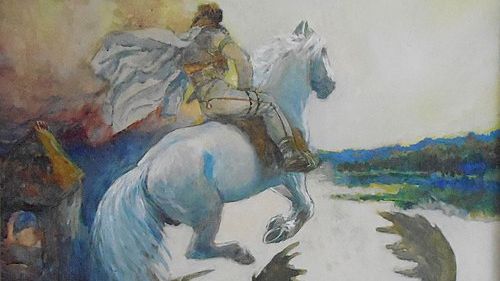A tady se konečně dostáváme k meritu věci. Do srdce příběhu. Po prvním „zavýsknutí“ začal kůň divně poskakovat. Po druhém skočil od jedné brány k druhé. Třetí „zavýsknutí“a povel jezdce: „Nuže, Šemíku, vzhůru!’“