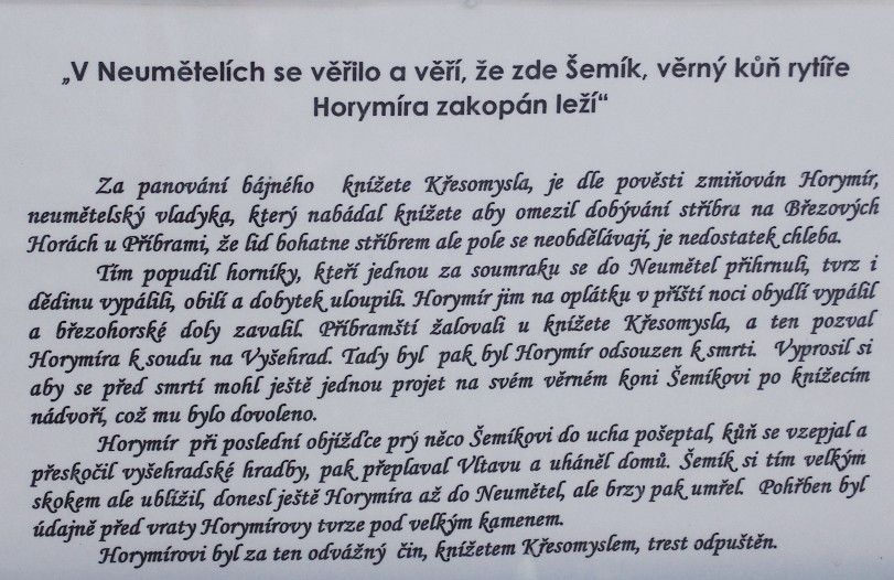 Podle Václava Hájka měl „Horymíř Neumětelský měl sedění mezi Berounem a Příbramí, jež slovou Ousiný, na hradě řečeném Neumětel.“