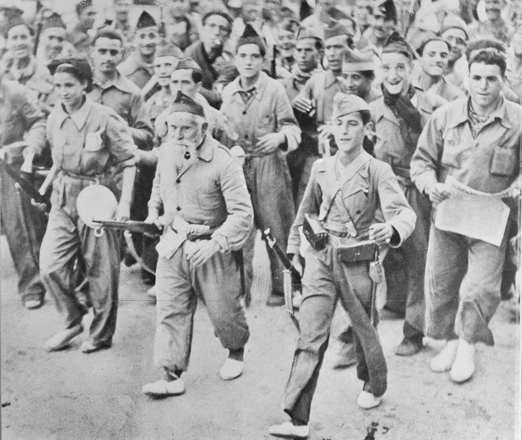 Jenže idylka revolucionářů a komunistů v Barceloně netrvala dlouho. Ideologické hádky přerostly v násilí a všichni se začali vraždit mezi sebou. Komunisti, anarchisti, socialisti, nacionalisti. Jako v tom starém vtipu o partyzánech a fašistech, kteří dobývali Vrátenskou dolinu. Až se Franko naštval a vypráskal je z Barcelony všechny.