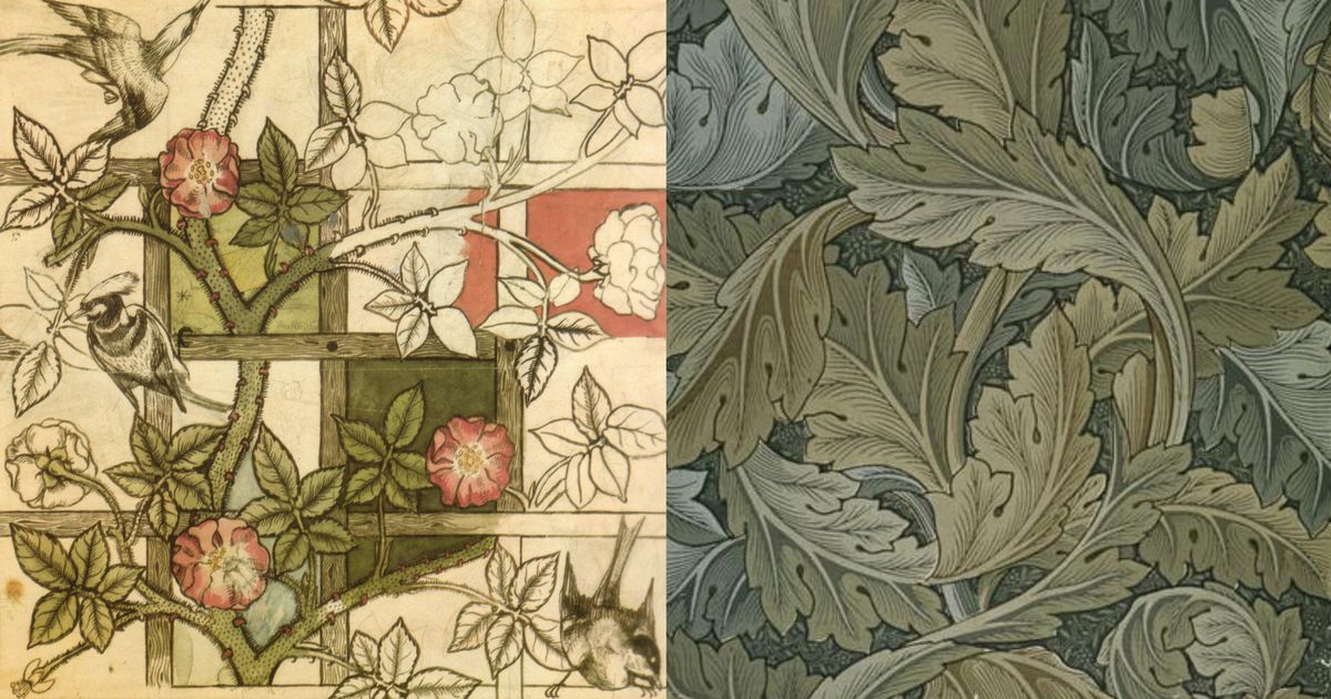 Vzory od Williama Morrise - zelené tapety a textilie bývaly v 19. století velmi oblíbené.