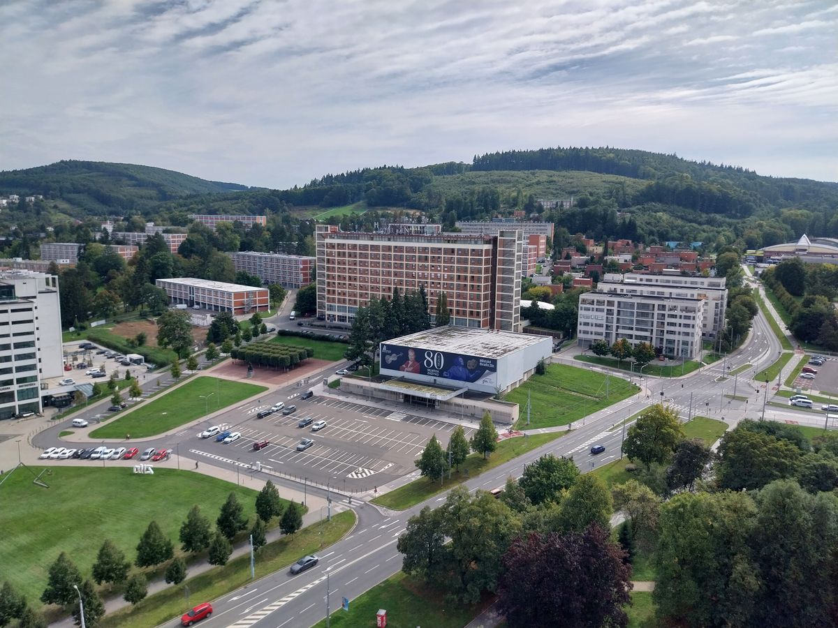 Pohled na zlínské náměstí Práce z vrcholu mrakodrapu