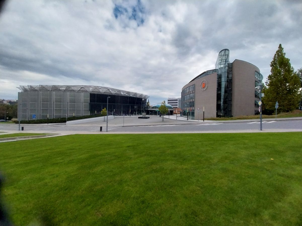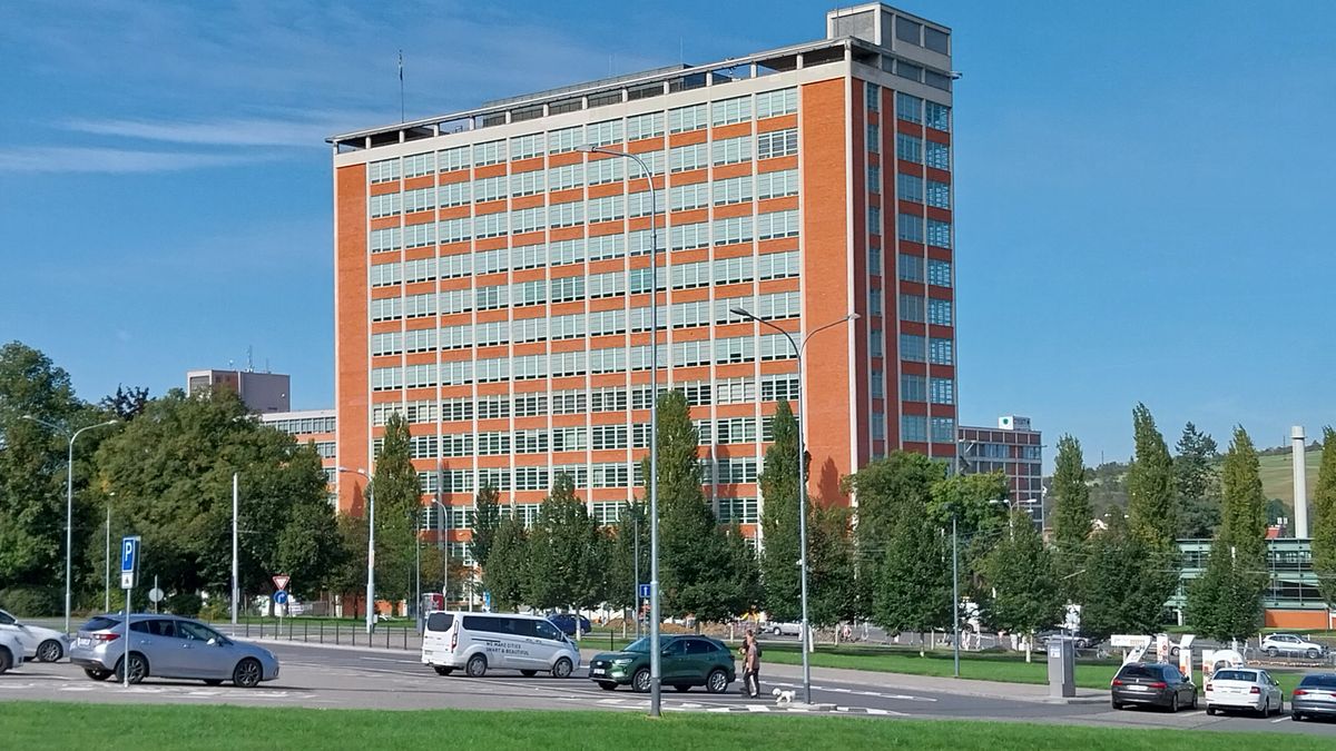 Moderní zlínská architektura - vlevo kongresové centrum architektky Evy Jiřičné