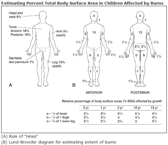 Lund a Browderův diagram, poprvé publikovaný v roce 1944, byl založen na zkušenostech s léčbou obětí požáru v Cocoanut Grove