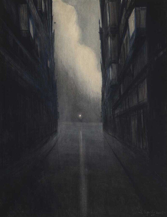 Spilliaert dokázal proměnit obyčejné věci jako lampy, ulici nebo ranní mlhu v prostor s tajemnou atmosférou. Na obraze Hofstraat in Ostend vidíme nehybnou mlhu, v níž září osamělé světlo lampy a prázdná ulice se ztrácí ve tmě. Nejsou zde žádné výrazné motivy ani dramatické kompozice — síla obrazu spočívá v umění proměnit obyčejný okamžik v tajemný. V jeho světě může být ticho hlasitější než zvuk a stín jasnější než přímé světlo. I proto jsou jeho obrazy tak zvláštně, až hypnoticky přitažlivé.