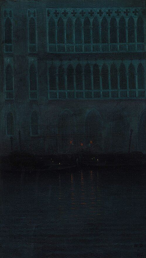 Noc v Benátkách (1895): „Pod temným palácem, kde voda dýchá nocí, ztrácí se světla gondol v černém tichu. Jen matný odraz lamp chvěje se na hladině, stíny oken bdí a hlídají tajemství, která den už nezahlédne.“