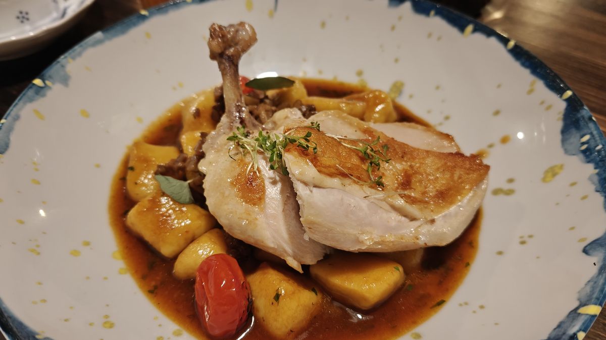 Jídlo v této restauraci je fantastické, promyšlené do posledního detailu. Na jídelním lístku vidíte, co jaké jídlo obsahuje, takže vás vůbec nic nemůže překvapit. Sama jsem si dala steak z iberijského vepře a salsa brambory, doprovod si dal kuře a noky s harisou. Jídlo bylo fantastické. Byť je iberijské vepřové specifické chuti, v tomto případě skvěle ladilo s přílohou a omáčkou. Na jídlo nebyla použita žádná laciná náhražka, což bylo hodně znát. To samé platí i u jídla, které měl doprovod.