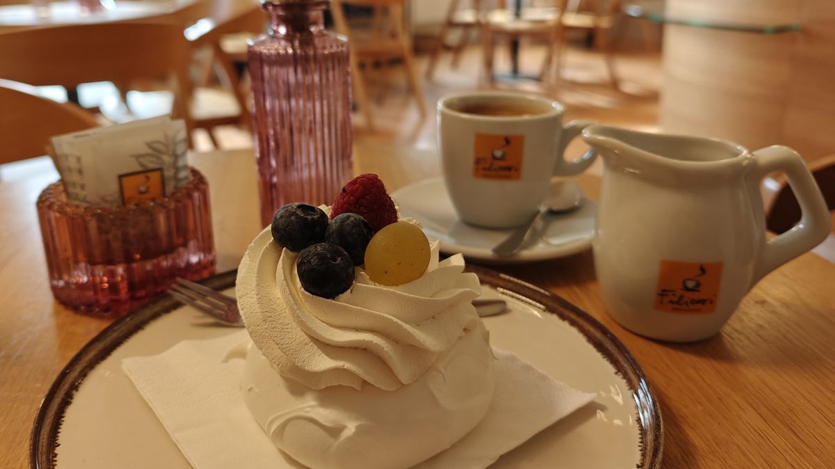 Kávu vám v této kavárně nepřipraví podle nejmodernějších trendů, k espressu ani vodu nedostanete, jak je po desítky let standardem, ale chuťově je káva dobrá a hezky voní. Co stojí za hřích, jsou dortíky. Taková Pavlova je nezapomenutelný gurmánský zážitek. Jen se rozplývá na jazyku. A ten krém. Lepší jsem snad ještě nejedla. V nabídce kavárny jsou i domácí limonády, které rozhodně stojí za ochutnání.