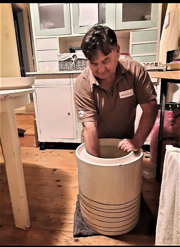 „Na vrchní vrstvu zelí dám dvě půlkruhové dřevěné destičky. Já zelí zatěžuji kamenem i v keramické nádobě. Dolévám vodu pod svrchník, aby se zabránilo přístupu vzduchu, Soudek nechám v kuchyni, aby natlačené zelí začalo kvasit při pokojové teplotě, cca 2 týdny. Pak ho vynesu do sklepa, kde je chladněji a tam vydrží do února. Pokud ze soudka odebírám zelí, vyberu i dřevěné destičky. Pak seberu zelí a znovu uložím destičky. Ty, které dám poprvé, omyju ve vodě. Čistou chladnou vodu doliji jen tehdy, pokud po stisknutí zelí destičkama, nejsou destičky pod hladinou,“říkal Mirek.