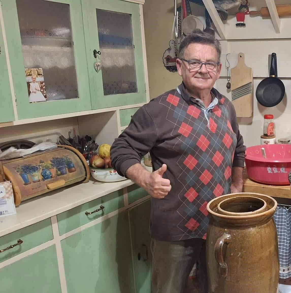 Kamarád Miroslav mi poskytli svůj recept, který v rodině uchovávají po babičce i fotografie, jak si z nakládání zelí udělal zábavu