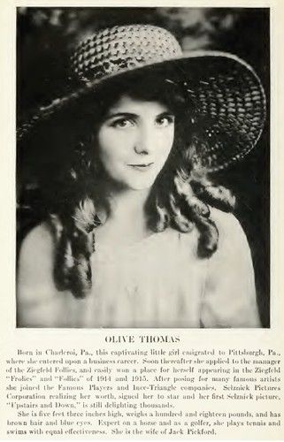 Do světa filmu ji uvedl herec Jack Pickford, za něhož se později tajně provdala. Byla hvězdou němých snímků a její sláva rostla. Poprvé na sebe upozornila ve snímku Beatrice Fairfax a jeho pokračování (1916), následovalo například Beating the Odds (1919), dobrodružně laděné drama, v němž Olive opět potvrdila svou popularitu u publika, nebo Out Yonder (1919) – melodrama z prostředí newyorských chudinských čtvrtí, kde dokázala, že bez potíží dokáže zahrát i vážnější role. Jejím nejslavnějším snímkem je ale dodnes The Flapper (1920), v němž ztělesnila moderní, sebevědomou mladou ženu – „flapperku“. Jeho prostřednictvím se stala doslova symbolem nové generace. Jenže ne na dlouho.