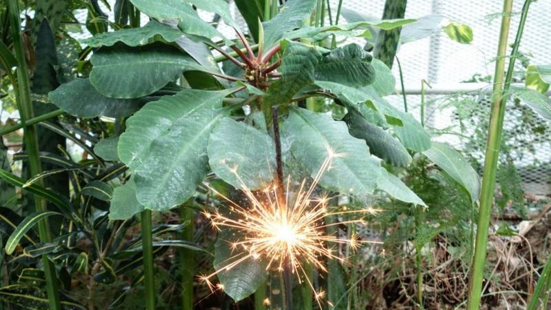 Už na prvních pár metrech se totiž zastavíte klidně na čtvrt hodiny – rozhodně je co pozorovat. Masožravky, orchideje a kvetoucí bromélie patří mezi vděčná témata. Ale nic k osahání nebo prohlédnutí nečekejte (tedy většinou). Na aktuální prohlídce nás v tomhle místě ze 46 zůstalo 32 (a na konci už jen 24, jen tak mimochodem). A právě na konci tohohle skleníku čeká nenápadná kolekce suchomilných rostlin. A byly nám slíbeny i rostlinky silvestrovské. „Vezmu vás na silvestrovské prskavky,“ slíbila nám paní Galvasová. A nelhala.