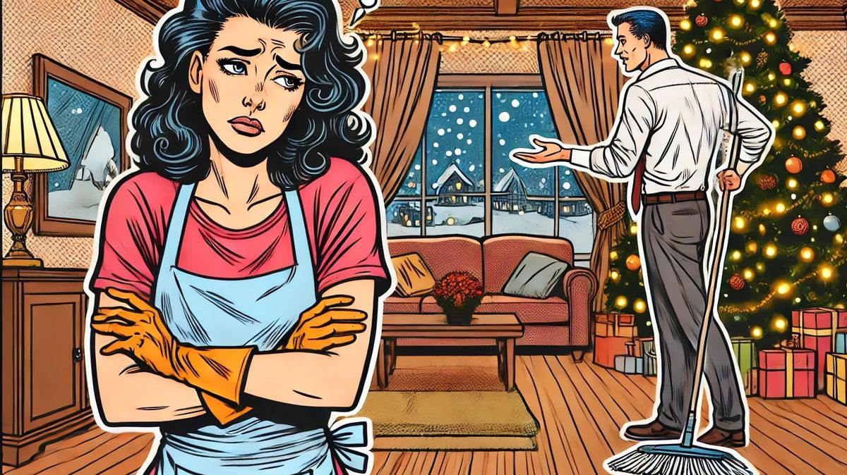 Dej sem to koště, miláčku. To už by stačilo, na Vánoce přece chodí Ježíšek a ne kontrola z hygieny.