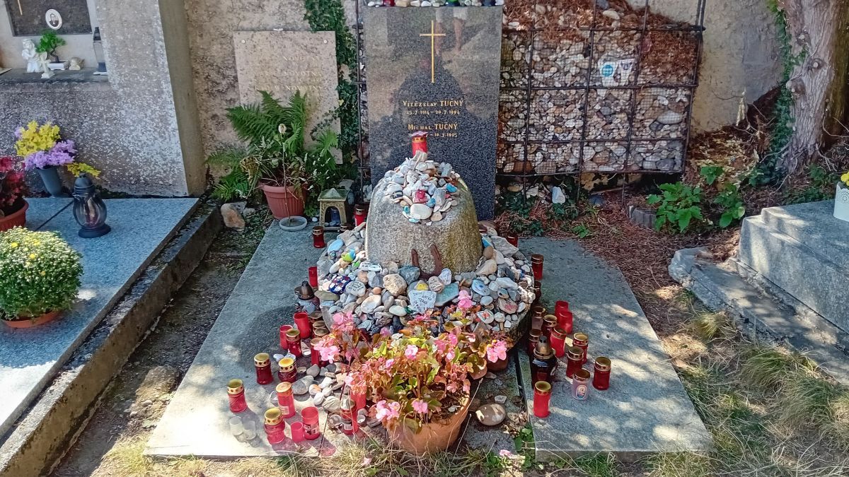 Pochovali ho na hoštickém hřbitově. A věřte, že jeho hrob rozhodně nepřehlédnete – kryje ho totiž žulový kamenný klobouk, na kterém hoří svíčky. Poslední odkaz legendy, jejíž písně si zpíváme dodnes.