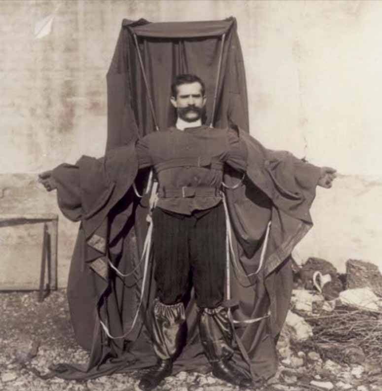 Nejdřív zkoušel svůj výtvor na figurínách, které házel z okna. A první pokusy vypadaly více než slibně – figuríny totiž dopadaly poměrně měkce a zdálo se, že jeho nápad není tak úplně nesmyslný (což si o něm ovšem myslelo jeho okolí a nijak to neskrývalo). Rozhodl se tedy, že vše vyzkouší přímo na sobě. A aby měl celý pokus ten správný šmrnc, tak rozhodně nechtěl skočit z obyčejného domu. Ne, hledal něco mnohem důstojnějšího – a nakonec zvolil rovnou Eiffelovu věž, symbol Paříže i celé Francie.