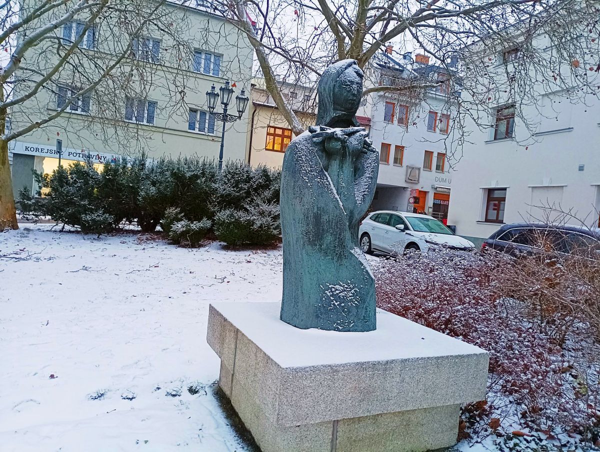 A jak se mu pomstít líp, než mu přímo na oči postavit pomník, který oslavoval to, co poněmčený občan svévolně zavrhl? A tak nechal umístit krásnou sochu v podobě smutné dívky právě na ulici Tržní, kde Waschekova vinárna stála. Zbývá ovšem ještě říci, že Bezruč se na onoho Theodora zlobil částečně neprávem. Poněmčený sice byl, ale o jeho příbuzného rozhodně nešlo. To ale zjistil až později.