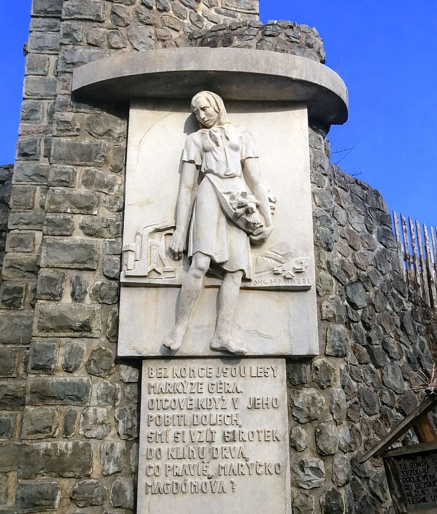Ale pojďme se po této stopě vydat dál. Na Starých Hamrech stojí pomník Maryčky Magdonové (najdete ho u ohradní zdi hřbitova). Nechal jej zhotovit místní Sokol v roce 1933 u sochaře Augustina Handzela. Jenže pozor. Ten pomník připomíná literární postavu, která sem přivedla spoustu návštěvníků, ne skutečný hrob.