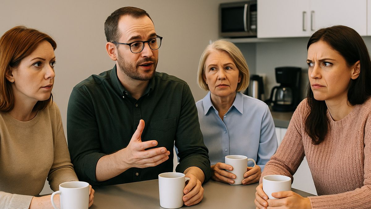 Když si vzpomenu na ten den, pořád mi přijde absurdní, jak rychle se z úplně nevinné debaty nad kávou stala skoro disciplinární záležitost. Bylo úterý dopoledne, stejně líné a šedé jako všechna ostatní. V kuchyňce seděla klasická sestava – Lucka, Petra, Jana a samozřejmě Marcela, která měla vždy připravený komentář ke všemu, co kdo řekne. Já jsem si míchal kafe a nijak zvlášť do hovoru nezasahoval, dokud se mě Lucka nezeptala, jak to zvládáme doma se školou a kroužky.
