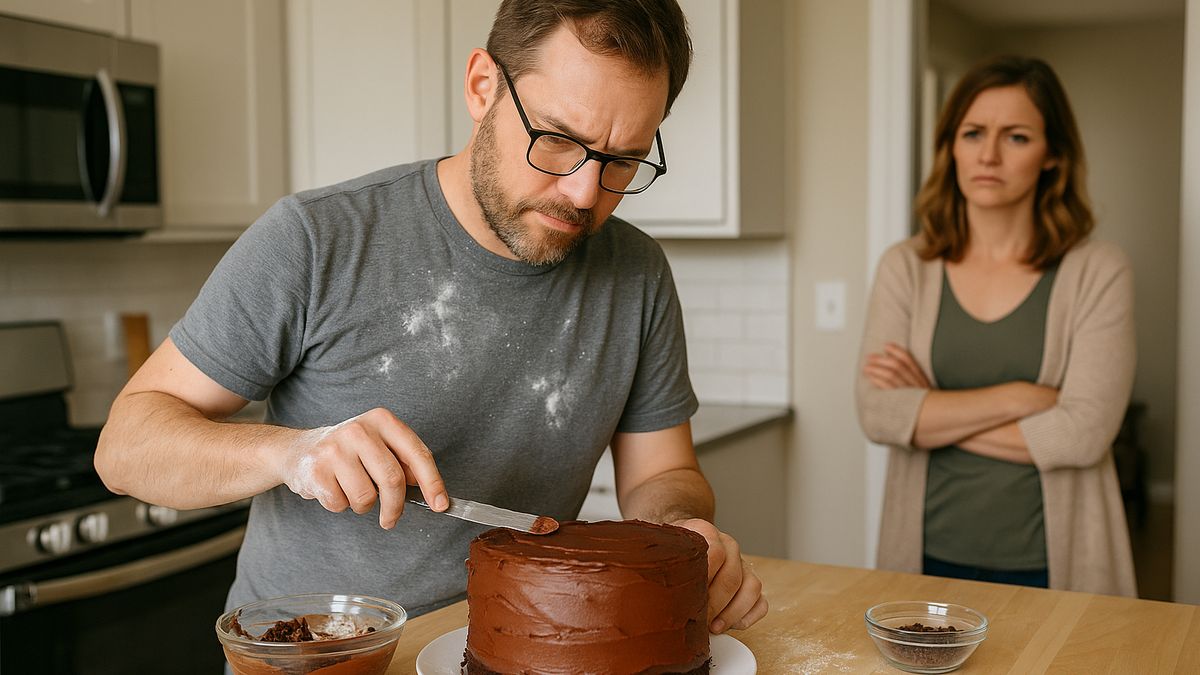 Dusno v kuchyni by se dalo krájet. Nechtěla jsem hned spustit hádku, a tak jsem se posadila a sledovala ho. Vážně tam stál, s jazykem mezi zuby, pečlivě zdobil vrstvu po vrstvě. Každý detail měl promyšlený. Když se mu nedařilo, začal znovu. Bylo vidět, že mu na tom opravdu záleží. A právě to mě pálilo nejvíc.