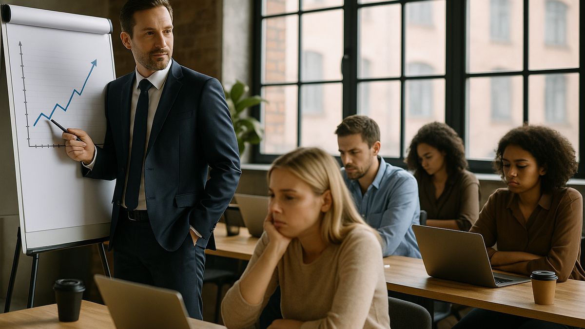 Když nastoupil, říkali jsme si, že konečně někdo rozhýbe věci. Hezky chodil, hezky mluvil, powerpointy měl jako z TED Talk. Jenže po pár týdnech bylo jasné, že jeho největší pracovní nástroj je… huba.