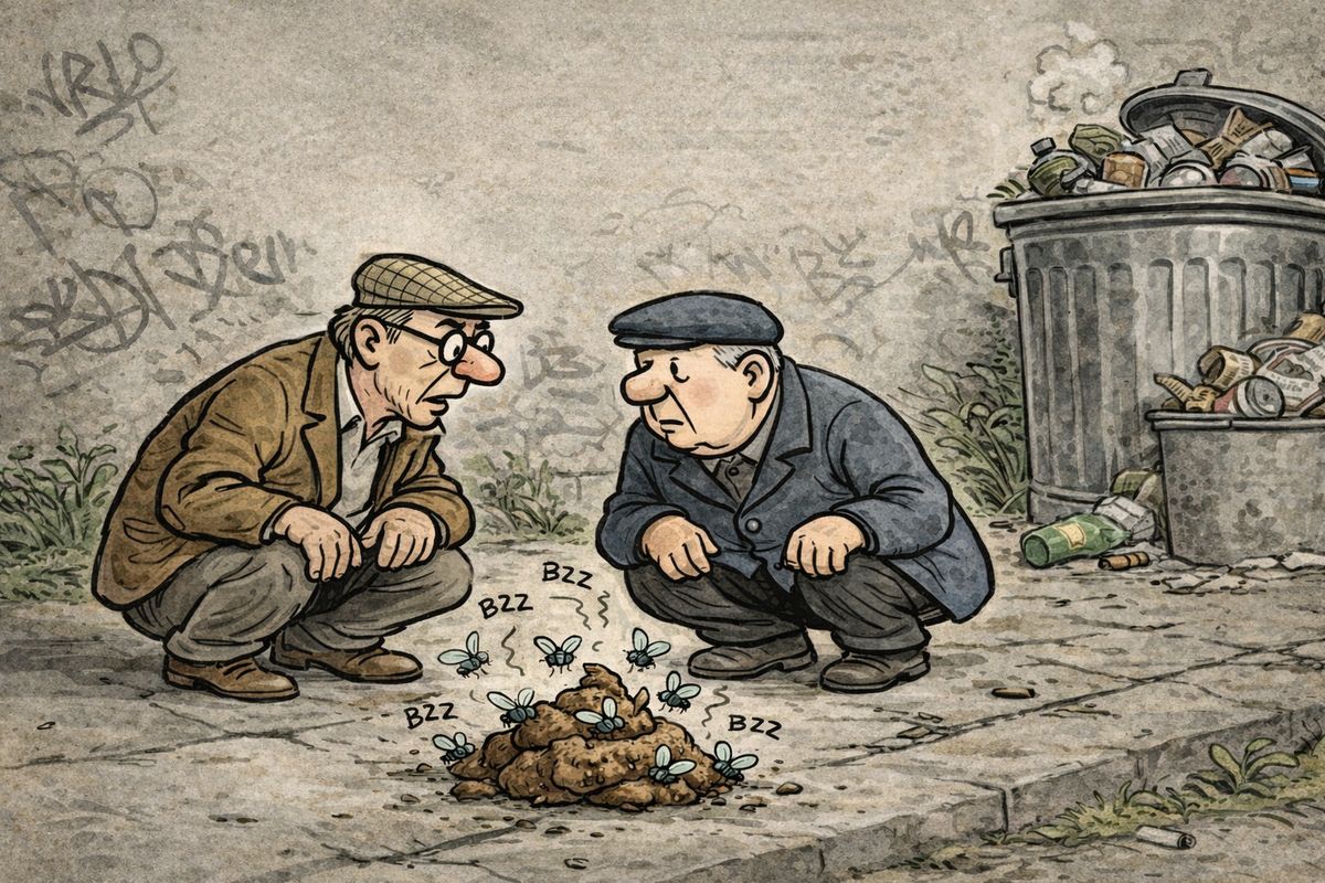 „Hele, Franto, a proč se vlastně říká ‘mouchy snězte si mně’…?“