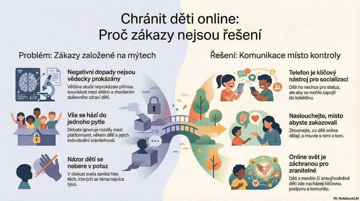 V celé této debatě navíc zcela zaniká hlas těch nejdůležitějších – samotných dětí a dospívajících. Nikdo se jich systematicky a do hloubky neptá, co by ve svém digitálním životě skutečně potřebovaly a ocenily.