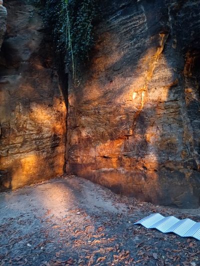 O kousek dál doplním vodu v prameni. A mezi pískovcovými skalkami si ustelu pod převisem. Když dělám večeři, začnou se objevovat místní párky… ale pecháček. Obsazeno.