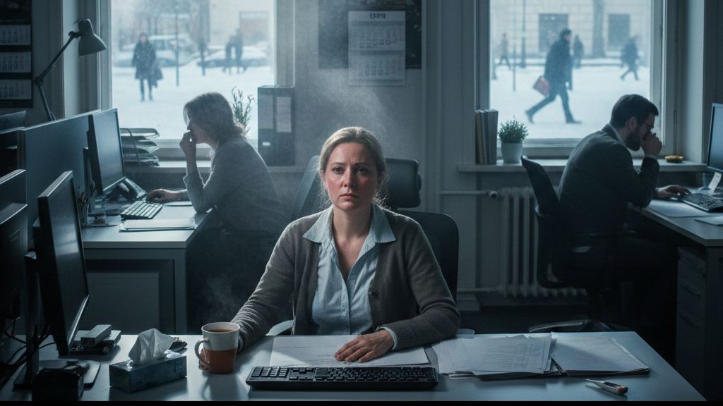Práce sama o sobě nemoc nezpůsobí, ale v zimě se stává katalyzátorem zdravotních potíží. Tělo, které nemá dostatek regenerace, pohybu a světla reaguje citlivěji na stres, nedostatek spánku i drobné infekce. Typický lednový shon a chaos v práci, je pro tělo zvyklé na volnější svátkový režim šok. Většinou poměrně rychle zapadneme do vyjetých kolejí a přivykneme pracovní zátěži. Pokud ale pracovní vypětí, stres či nevyspání trvá déle, může to být právě poslední kapka, která oslabí náš organismus a ten podlehne nájezdu bacilů.