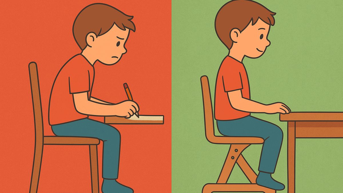 Náš syn měl od začátku potíže s psaním. Písmena byla roztřesená, vyjížděla nahoru i dolů z řádku a jeho ruka se rychle unavila. Často jsme to sváděli na „nešikovné prsty“. Až později nám došlo, že problém je mnohem širší – sahá až k tomu, jak sedí.