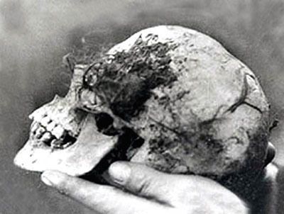 V jednu chvíli si všimli starého jilmu, který se jim pro takové účely zdál přímo ideální. Když se vyškrábali až nahoru, zjistili, že kmen je uvnitř dutý. To vzbudilo zvědavost chlapců, a tak nahlédli do temné díry. To, co spatřili, je ale naprosto šokovalo. Ze tmy se na ně totiž šklebila lidská lebka, která měla ještě několik zubů a dokonce i vlasy.