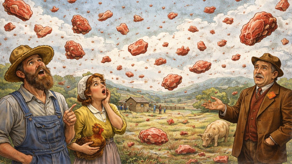 Krátce před polednem z čista jasna začaly z nebe padat kusy masa. Celé to trvalo jen několik vteřin, přesto tato nečekaná sprcha pokryla plochu o rozloze fotbalového hřiště. Odkud maso pocházelo a proč jen tak létalo vzduchem, v ten okamžik nikdo netušil.