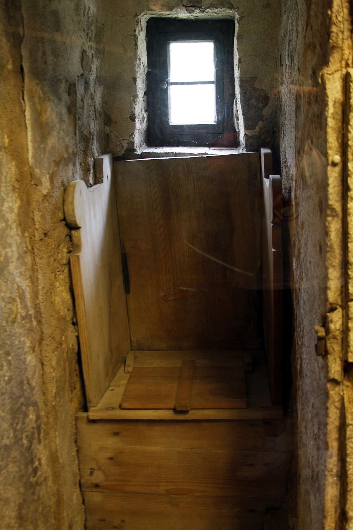 Na hradech se jednalo o kruhový otvor zabudovaný přímo do hradních zdí, na kterém byla umístěna dřevěná lavice. Pokud jste jako děti jezdili na nefalšované zálesácké tábory, kde jste si museli dokonce i latríny postavit sami, nejspíš si to dovedete živě představit.