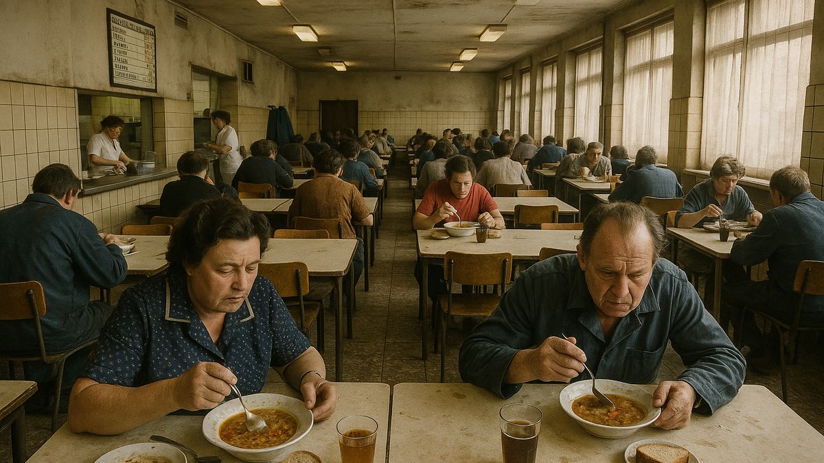 Hromadné stravování bylo za socialismu zcela běžné a často i vedoucí pracovníci zamířili na oběd do stejné vývařovny, jako jejich zaměstnanci. Kuchařky bývaly od rány, s ničím se moc nepáraly a nakládaly univerzální hnědou omáčku nebo španělské ptáčky na talíře jako na běžícím pásu.