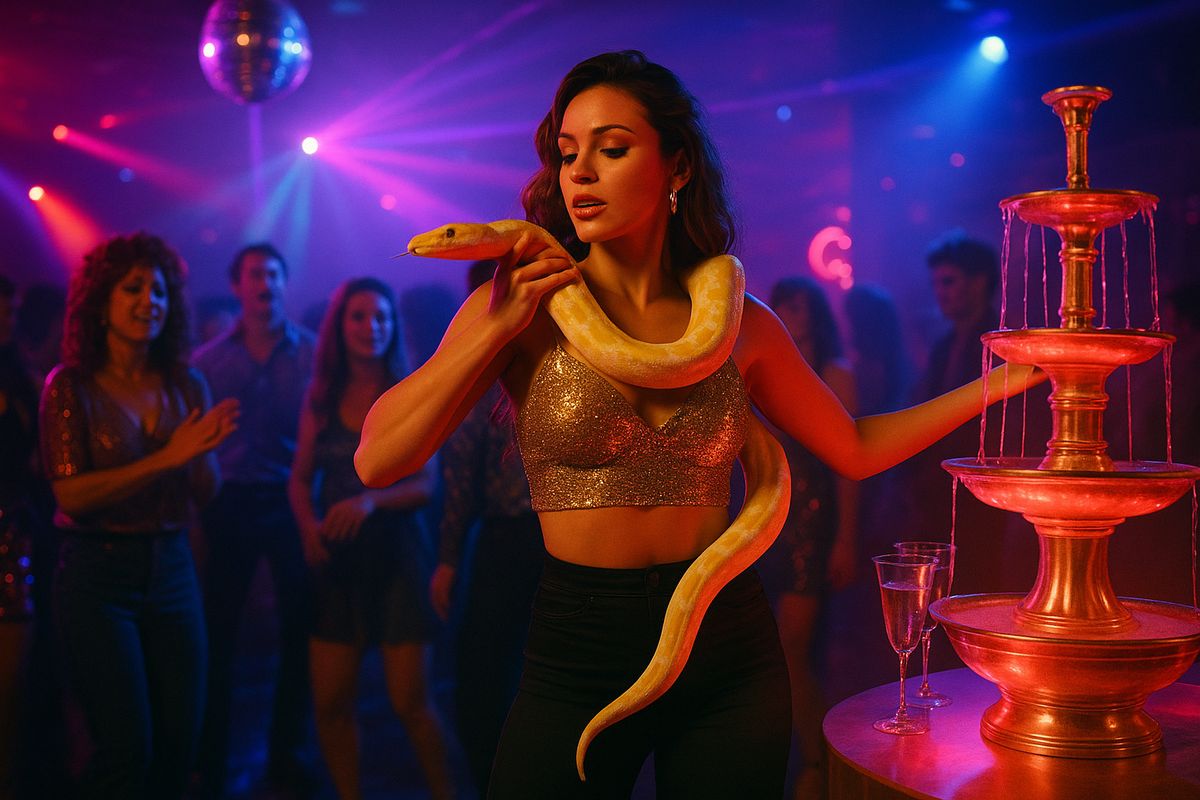 Další charakteristikou diskoték byla velká extravagance. Rozmáhala se všelijaká umělecká vystoupení, kupříkladu spoře oděné tanečnice. Většinou se jednalo o svůdný tanec například na židli nebo u tyče, některé dívky ale vystupovaly třeba i s živým hadem. Smutnou stránkou této podívané bylo, že nebohé zvíře většinou bylo nutné podchladit, aby nikomu neublížilo.