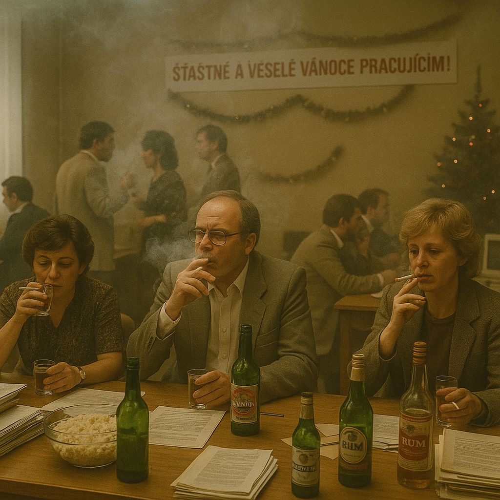 Jakmile se ale vedení podniku odebralo domů, začala ta pravá zábava. Vedoucí oddělení si povolil kravatu a možná si dokonce laškovně rozepl knoflíček košile. Na řadu pak přicházely láhve, které byly do té doby ukryté v bezpečí kancelářských skříněk.